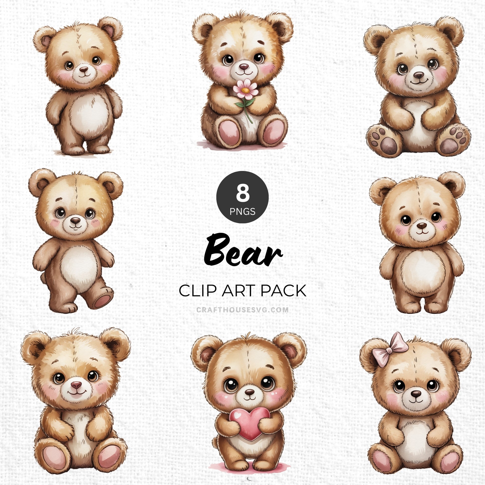 Bear Clipart Pack Sublimation Bundle PNG