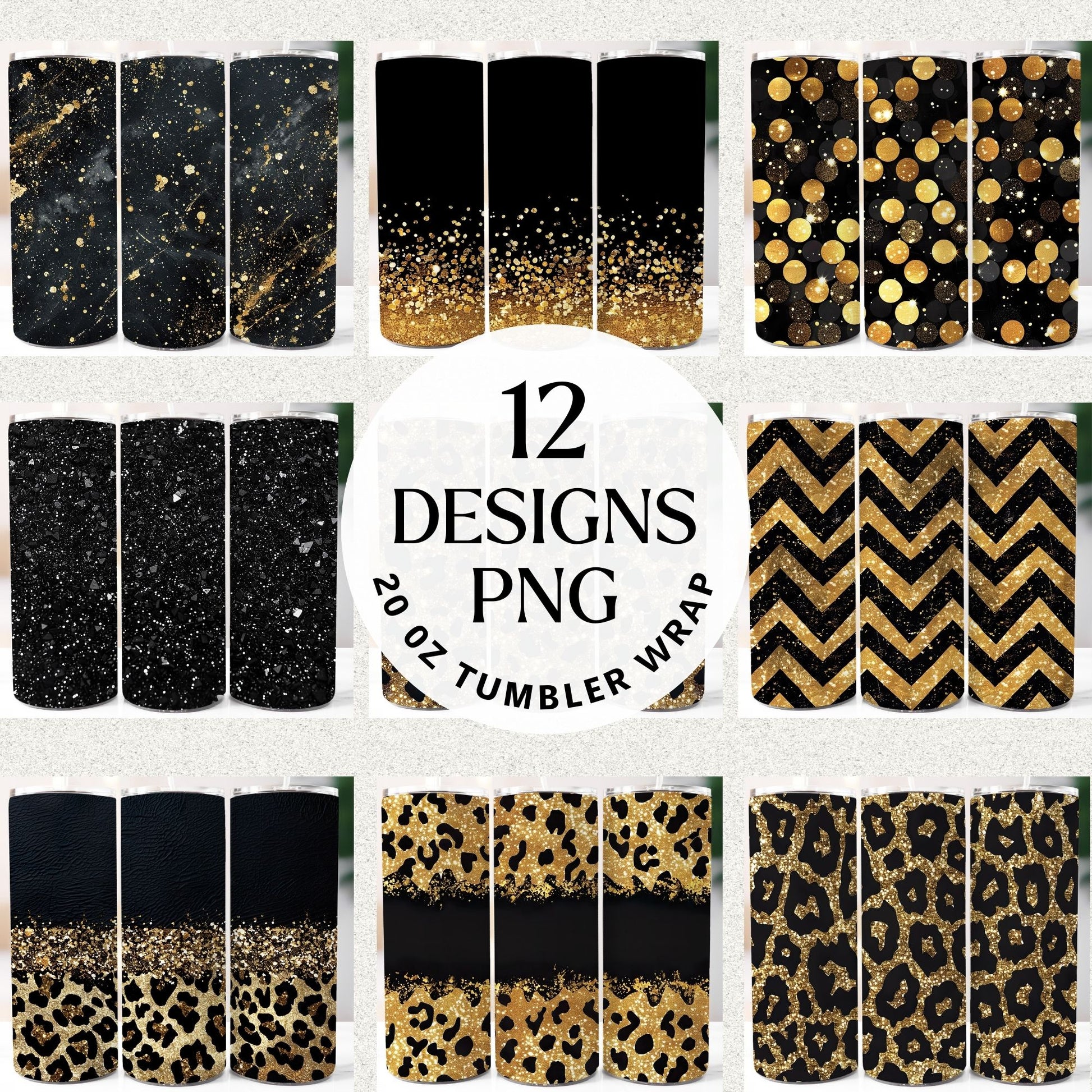 Black Glitter 20 oz Tumbler Wrap Bundle Sublimation Designs JPG
