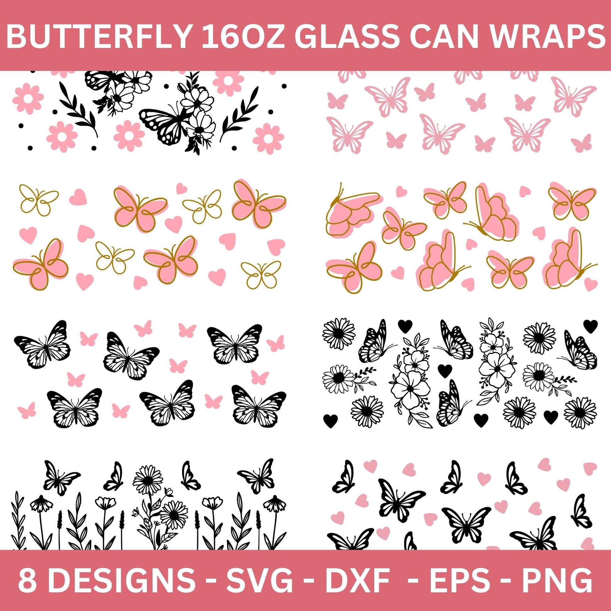 Butterfly 16 Oz Glass Can Wrap SVG Bundle
