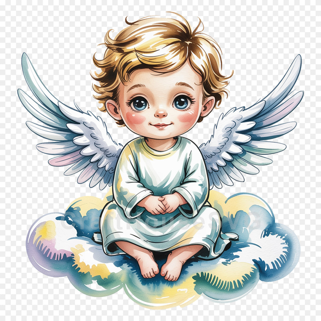 Cute Baby Angel on Cloud PNG Clip Art Sublimation