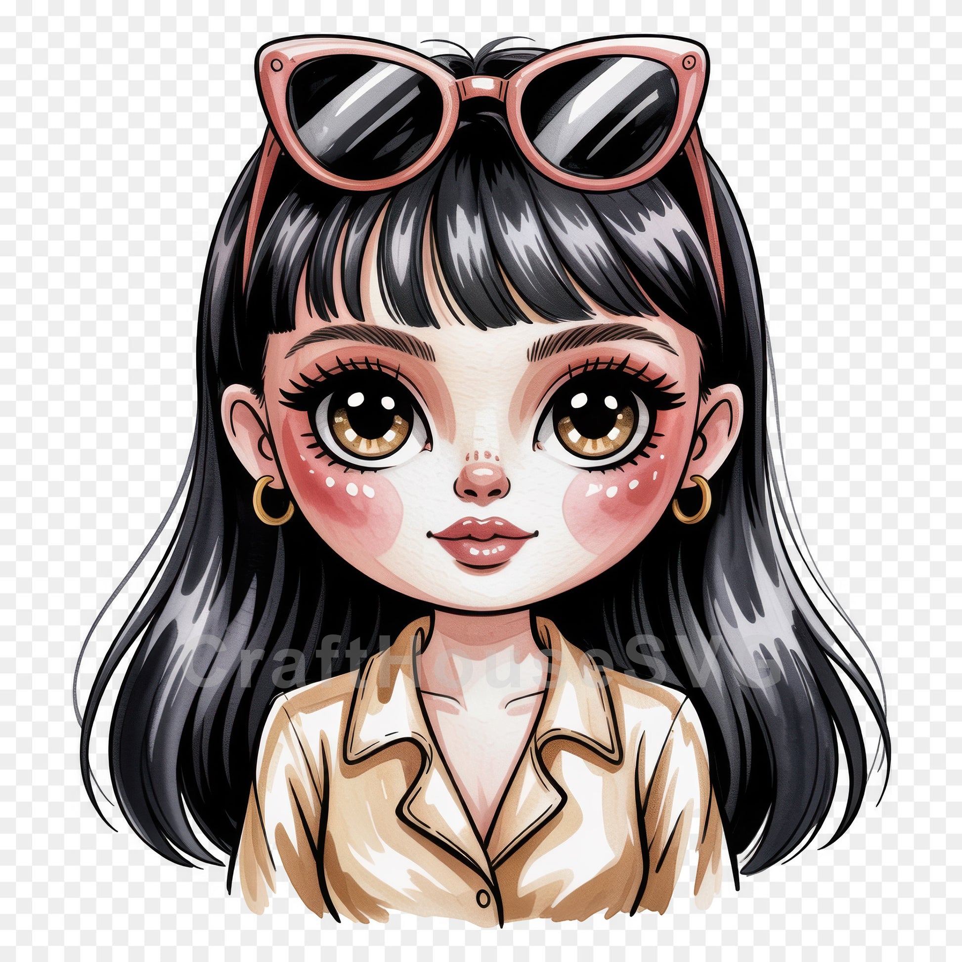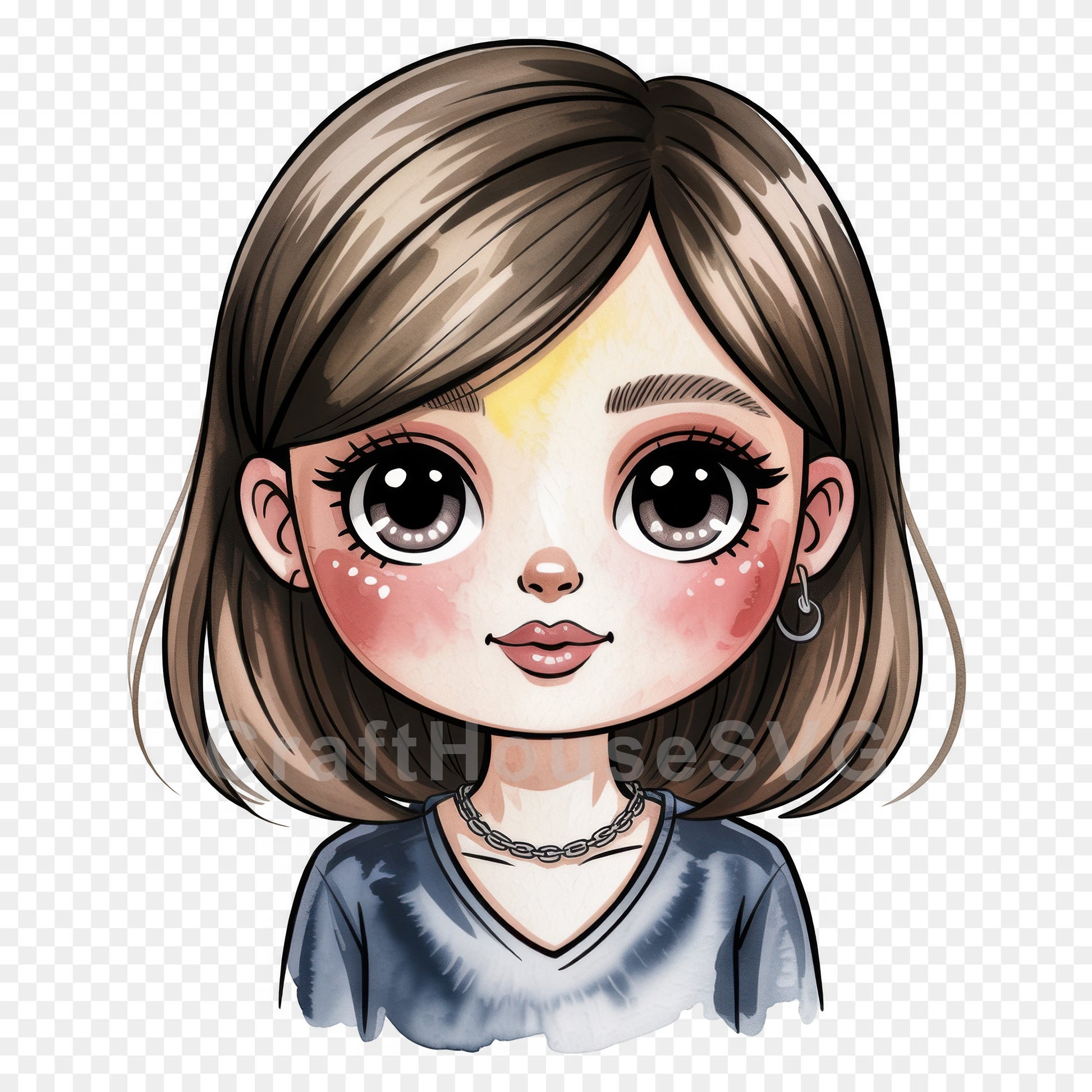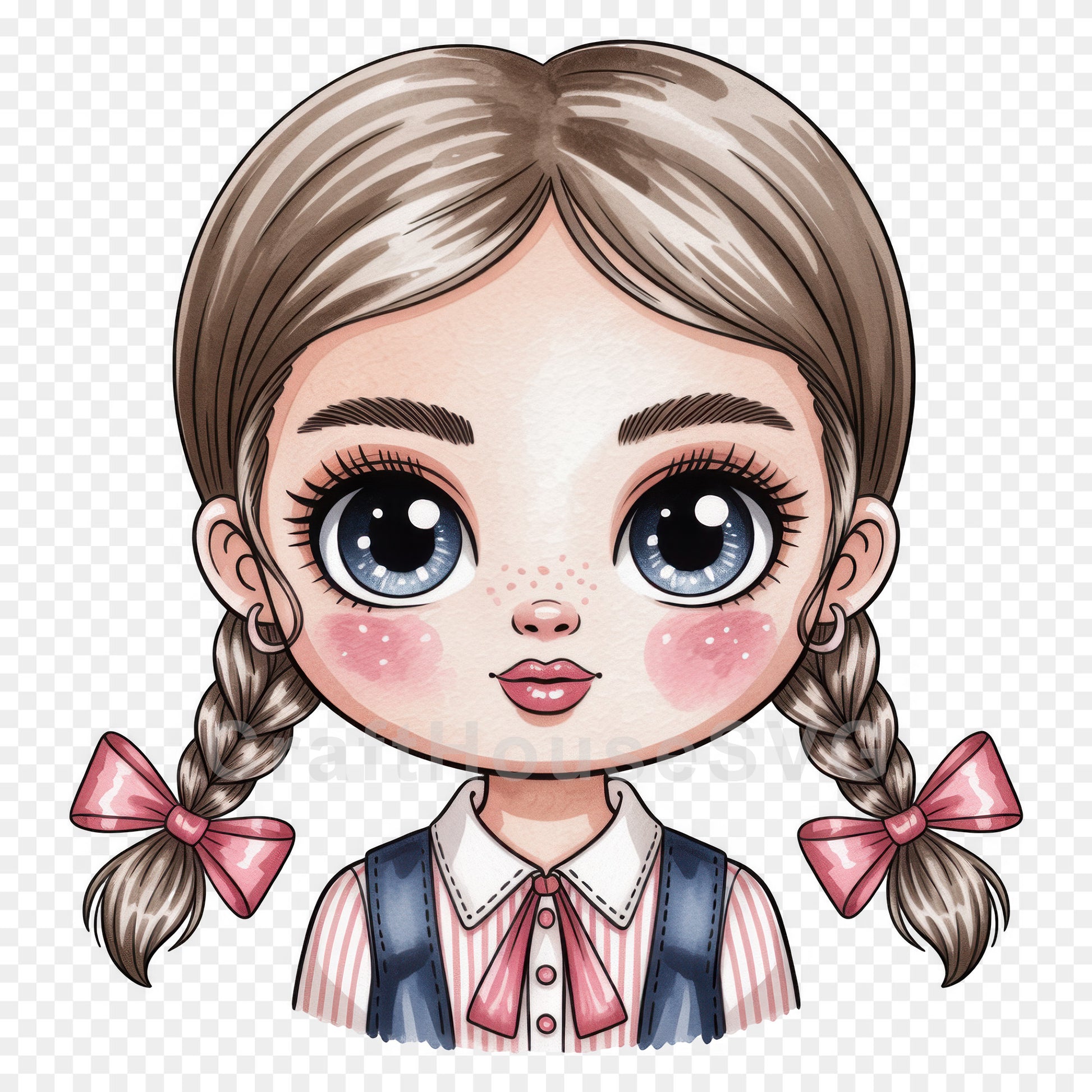 Cute Cartoon Girl Clipart Sublimation Bundle PNG