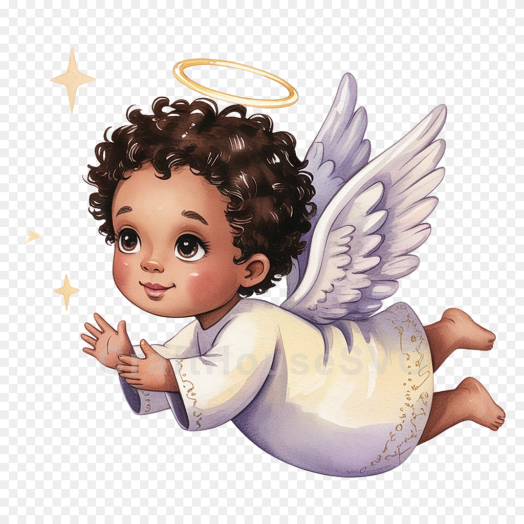 Flying African American Angel PNG Clip Art Sublimation