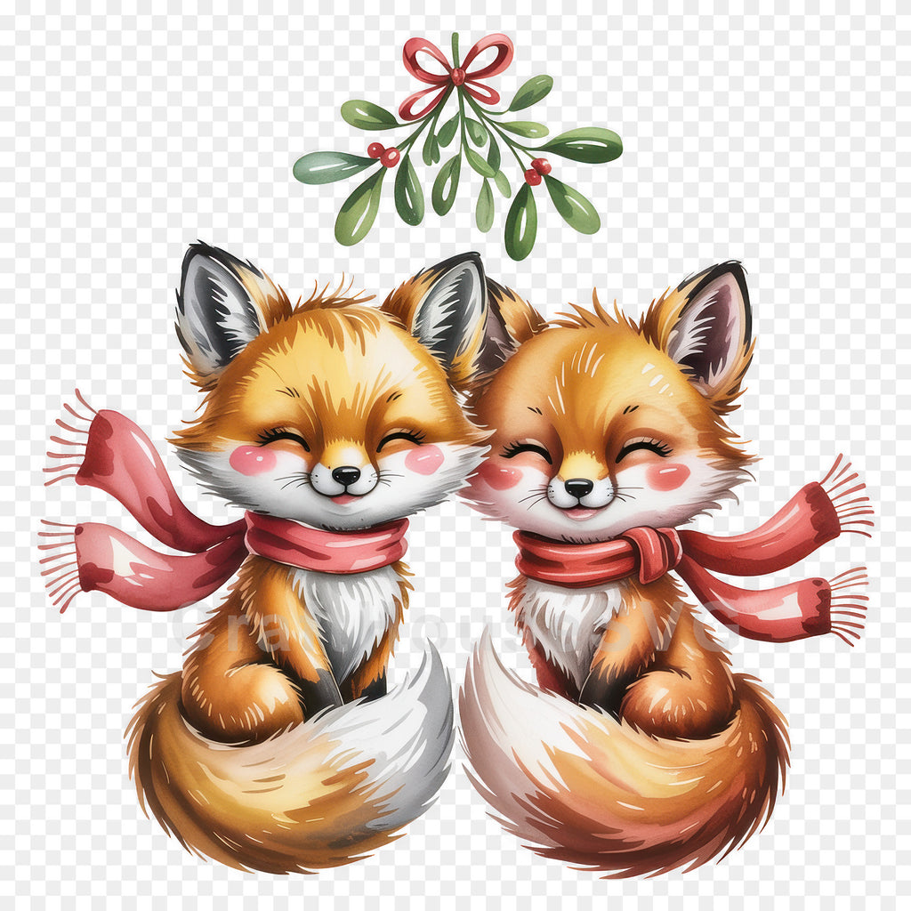 Foxes Under Mistletoe PNG Clip Art Sublimation