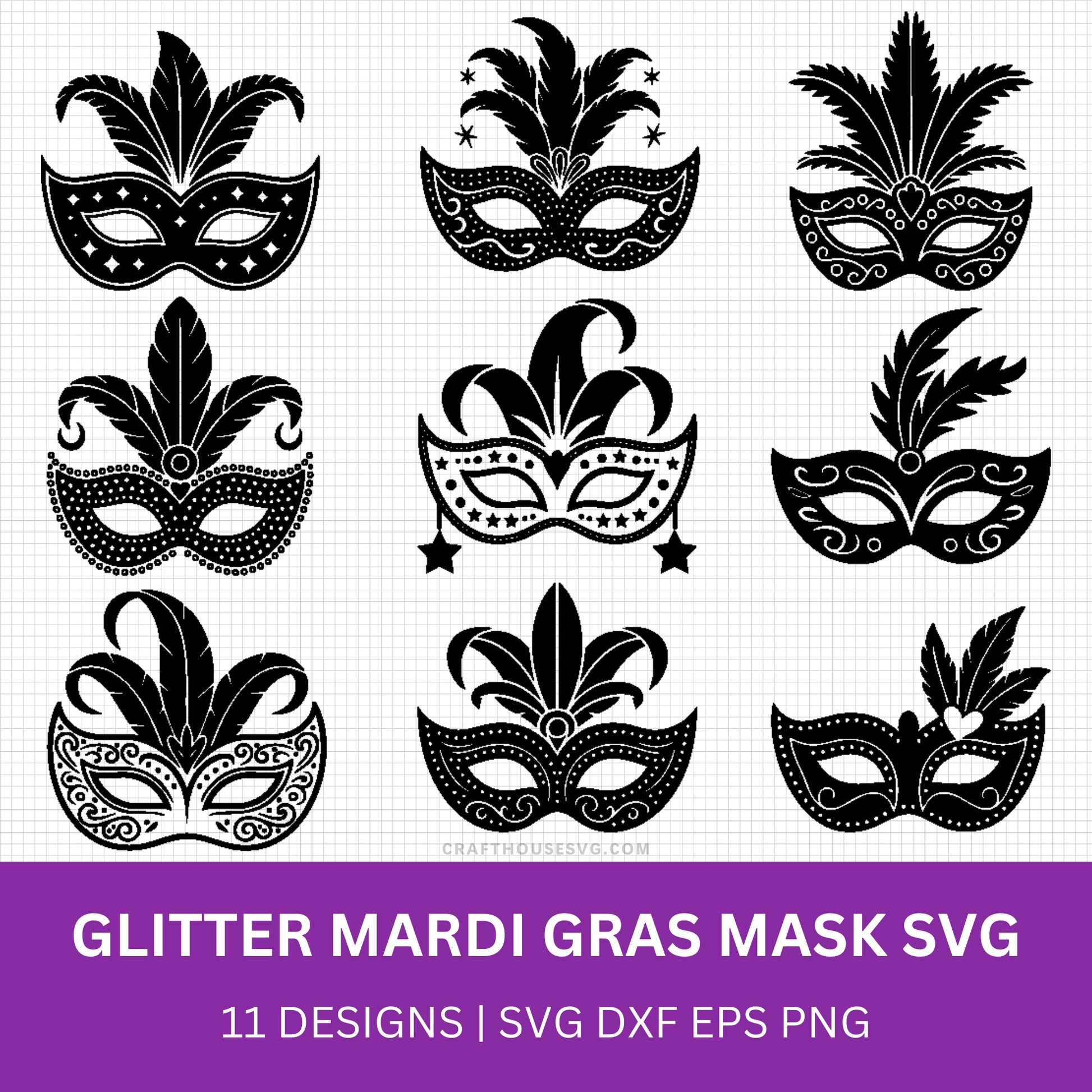 Glitter Mardi Gras Mask SVG Bundle