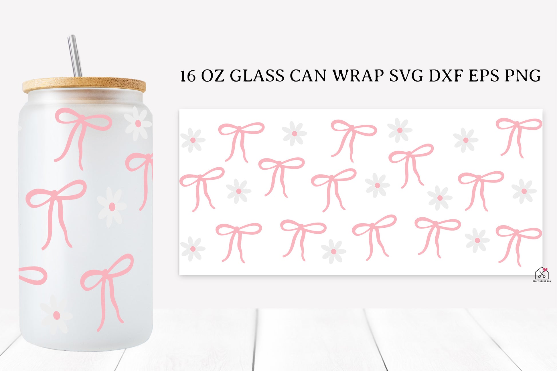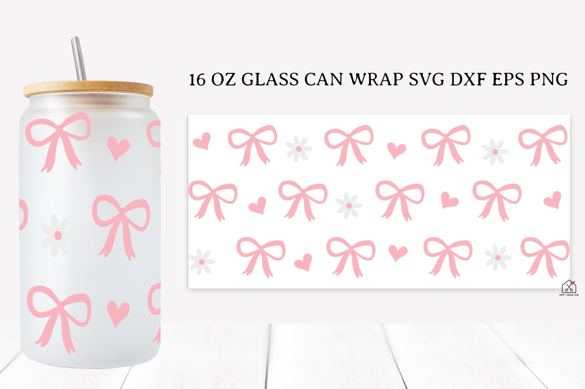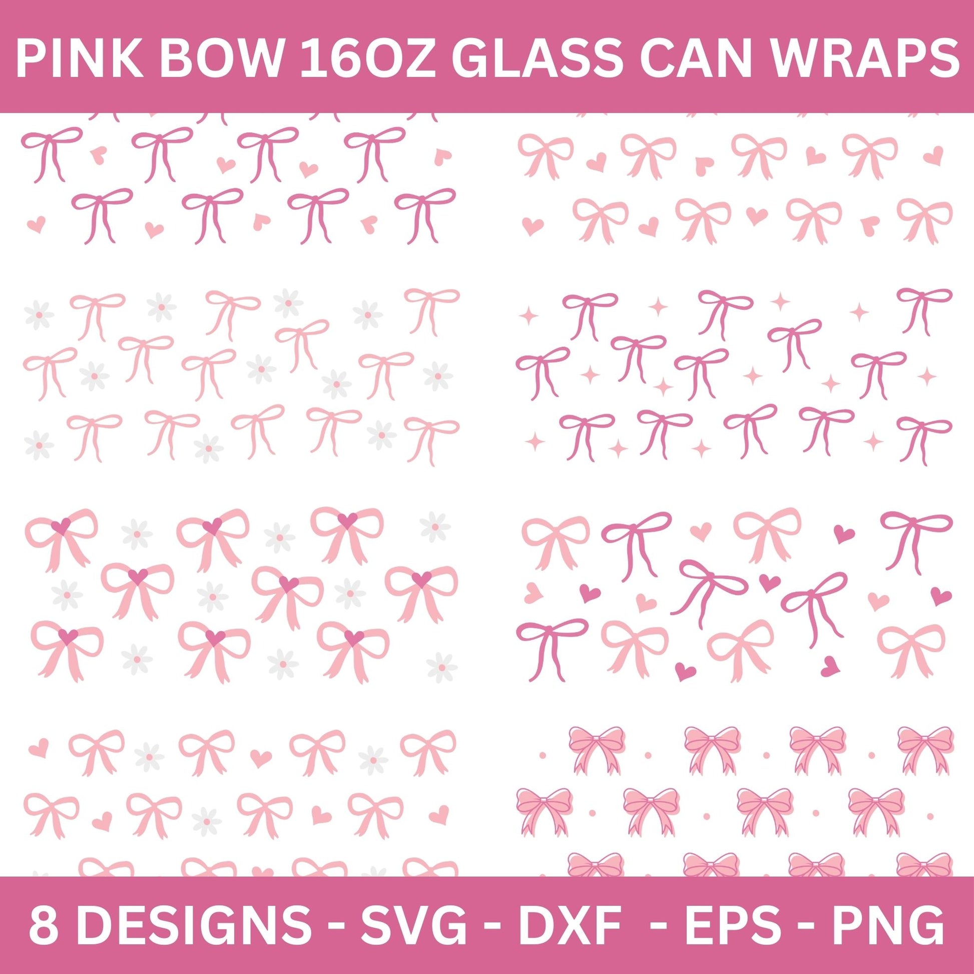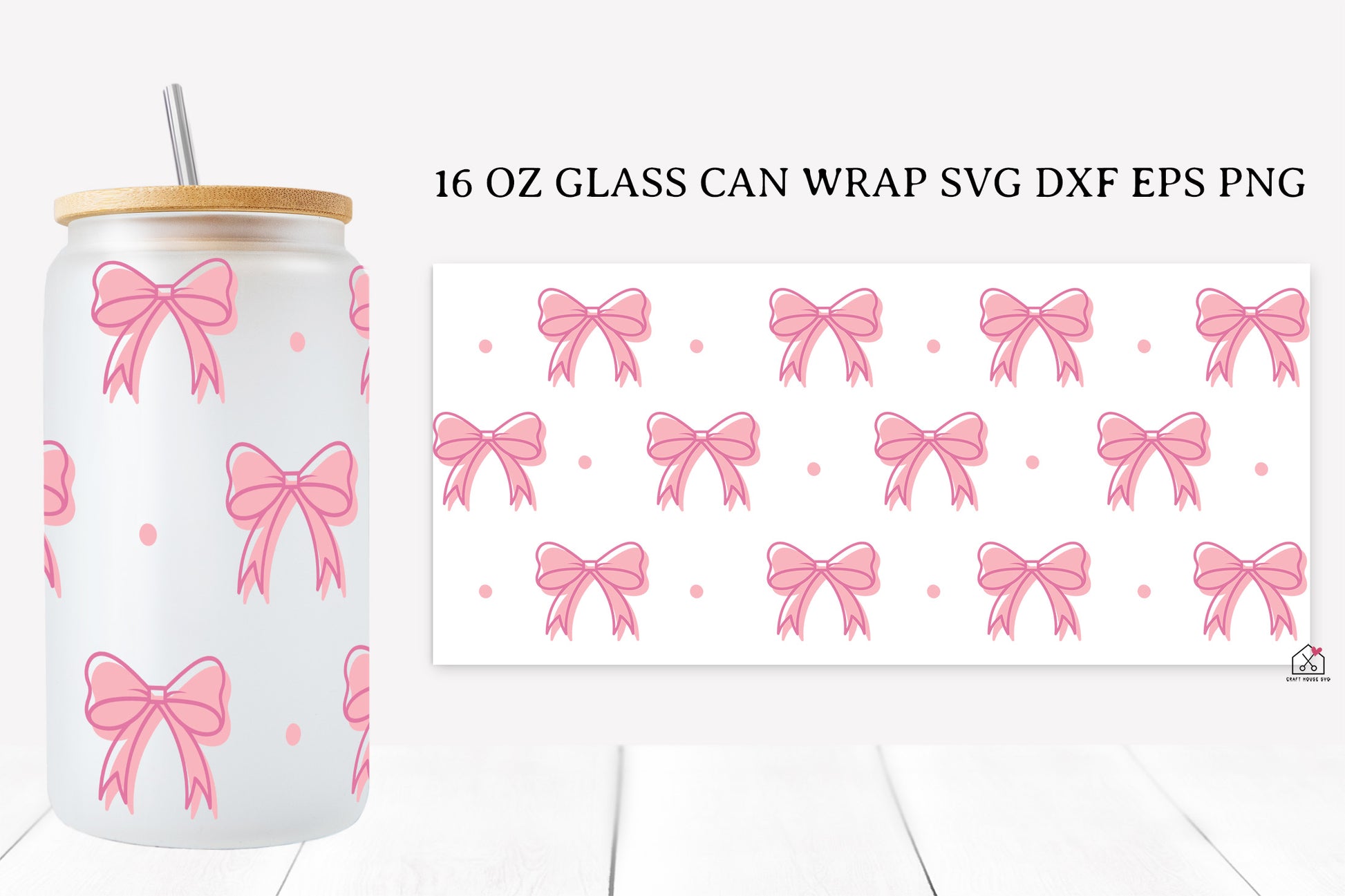 Pink Bow 16 Oz Glass Can Wrap SVG Bundle