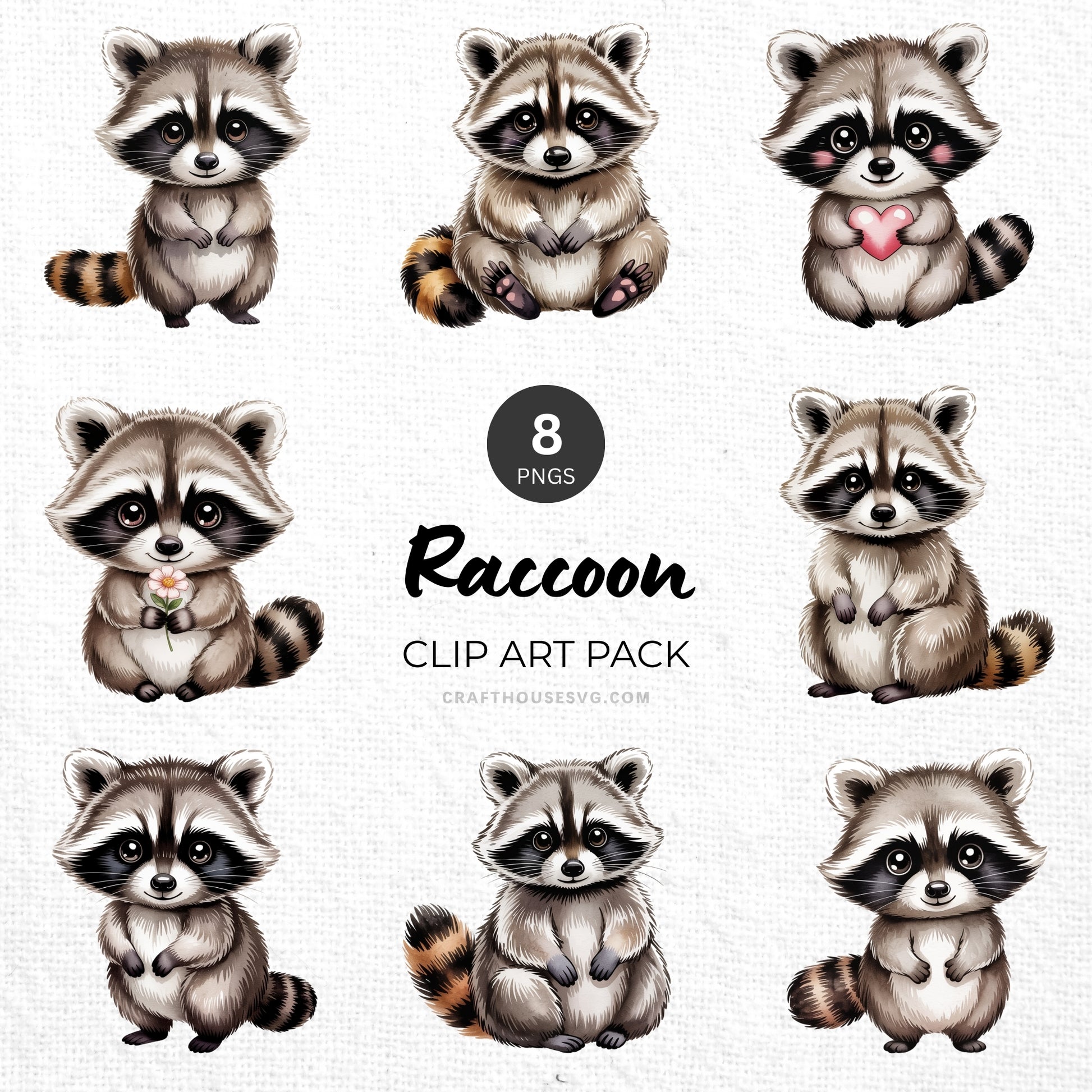 Raccoon Clipart Pack Sublimation Bundle PNG