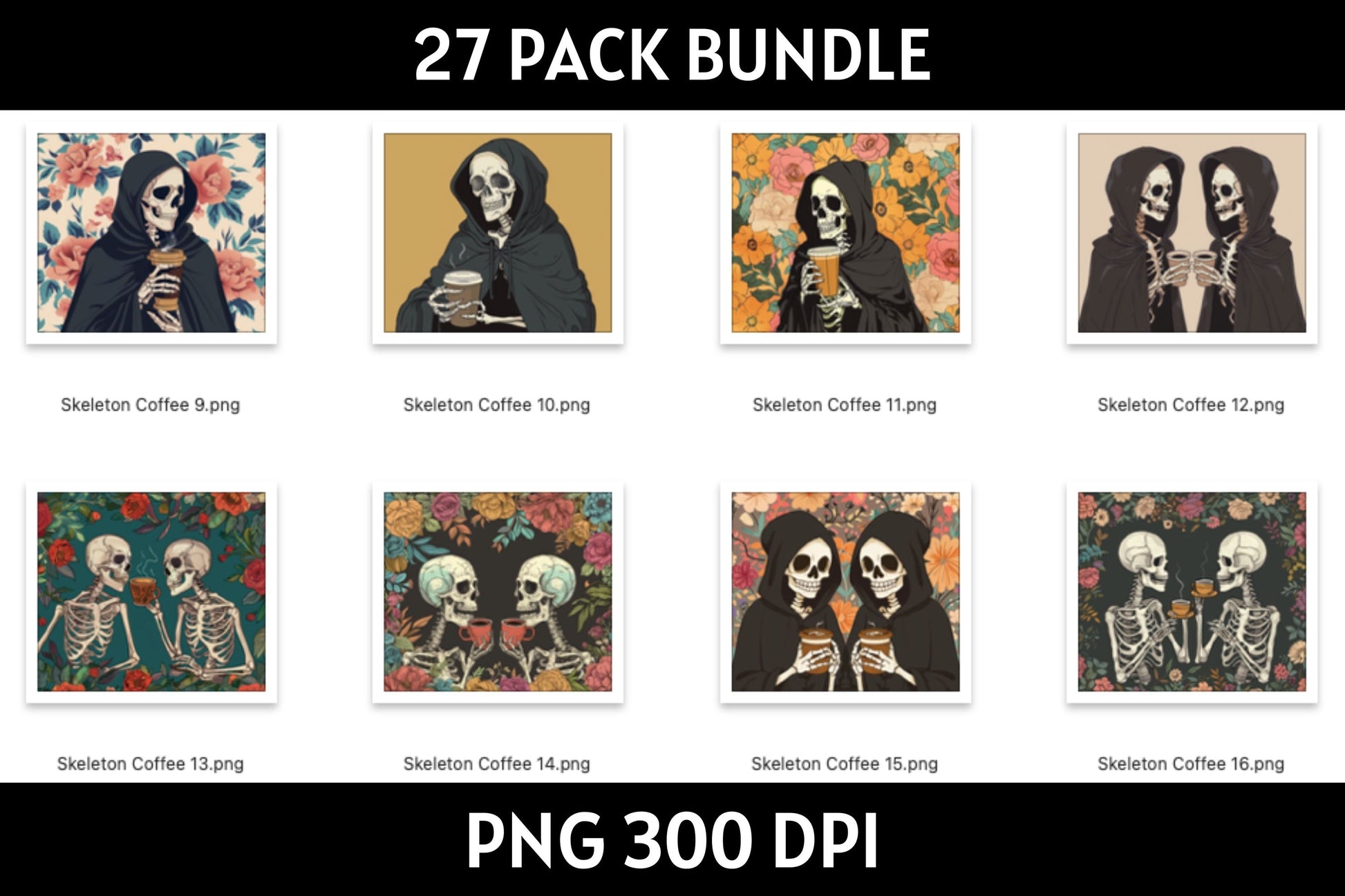 Skeleton Coffee Tumbler Sublimation Bundle PNG 20 oz