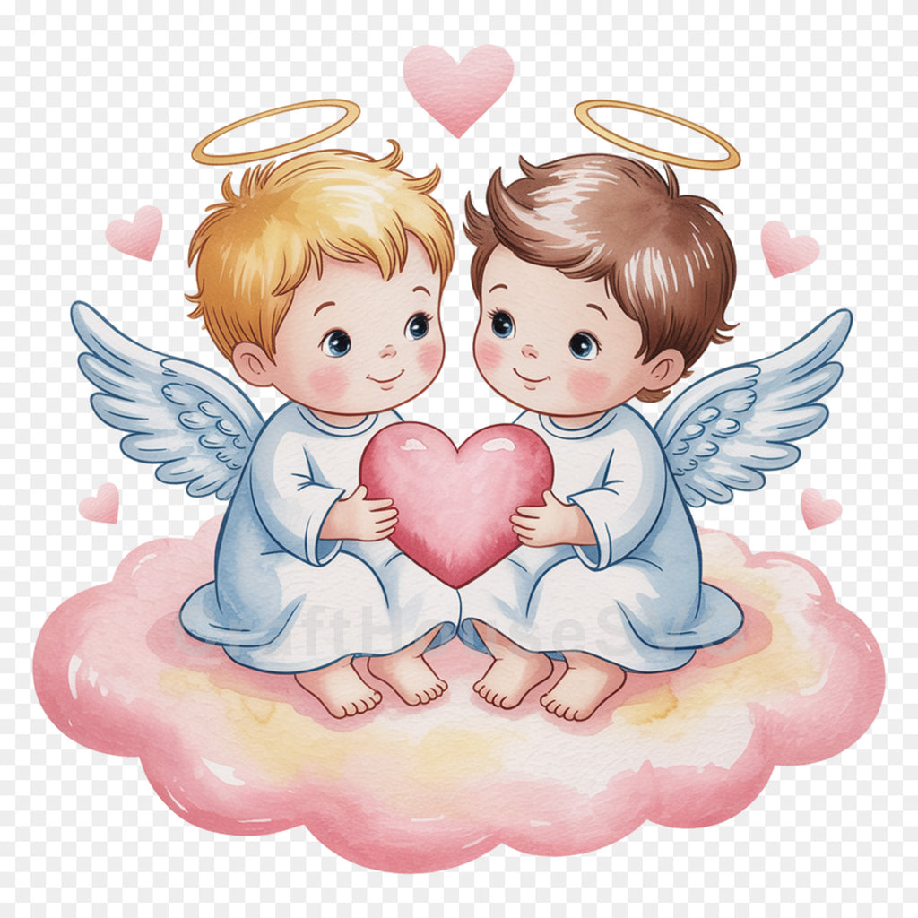 Two Little Angels with Heart PNG Clip Art Sublimation