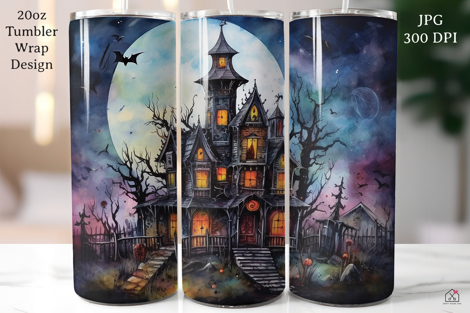 Watercolor Halloween 20oz Tumbler Wrap Bundle Sublimation Designs JPG | SB17