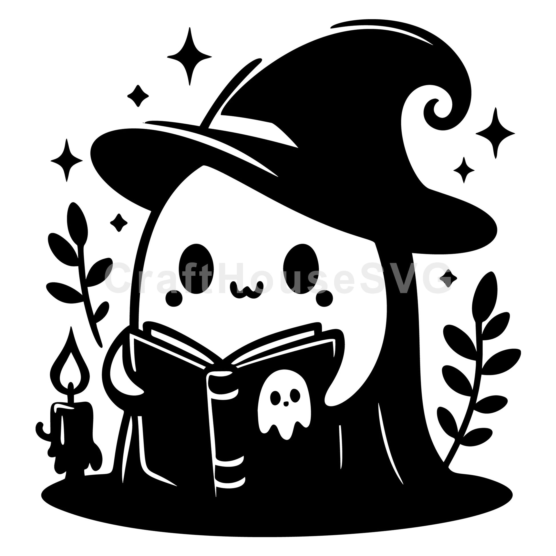 Witch Ghost Reading Book SVG